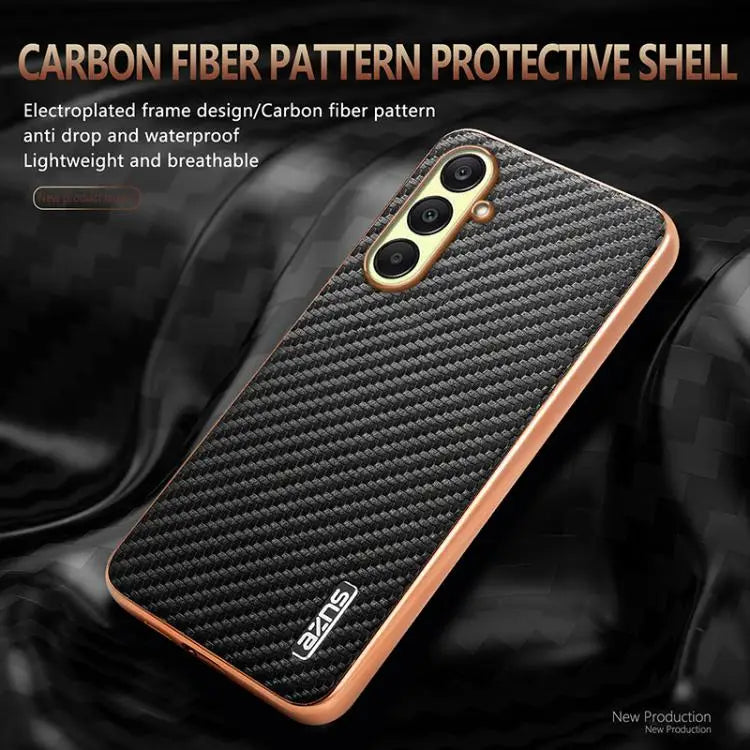 Voor Samsung Galaxy A17 4G / 5G AZNS gegalvaniseerde rand koolstofvezel textuur telefoonhoesje (bruin)