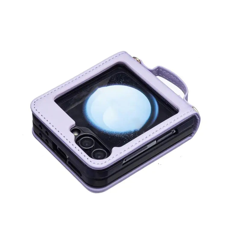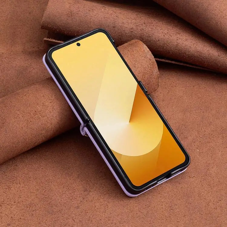 Voor Samsung Galaxy Z Flip7 Golfvormige Crossbody Lanyard Leren Telefoonhoesje (Paars)