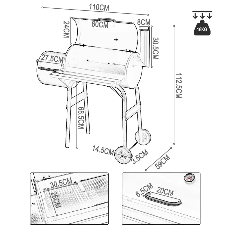 BukkitBow - Houtskoolbarbecue - BBQ van Staal - 3 Grillroosters - 115x53x114 cm - met Uitlaat