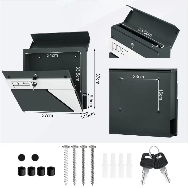 De installatie van de BukkitBow Wandbrievenbus is eenvoudig en snel, zelfs voor degenen die niet ervaren zijn in doe-het-zelfwerk. De brievenbus wordt geleverd met een complete set montagematerialen en een gedetailleerde, geïllustreerde handleiding, waardoor je de brievenbus binnen enkele minuten aan je muur kunt bevestigen. De geïntegreerde krantenhouder onder de brievenbus biedt een handige plek voor je kranten, tijdschriften en folders, zodat deze niet samen met je post hoeven te worden opgeborgen. Met een aparte ruimte voor grotere poststukken en een sleutelslot voor extra veiligheid, is deze brievenbus niet alleen functioneel, maar ook een stijlvolle oplossing voor al je post- en krantenopslag. Voeg de BukkitBow Wandbrievenbus toe aan je woning en geniet van een combinatie van modern design en praktische bruikbaarheid.