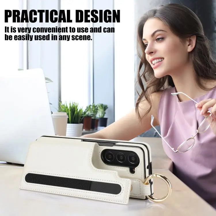 For Samsung Galaxy Z Fold7 Litchi Texture Double Buckle Leather Phone Case with Pen Slot(White)