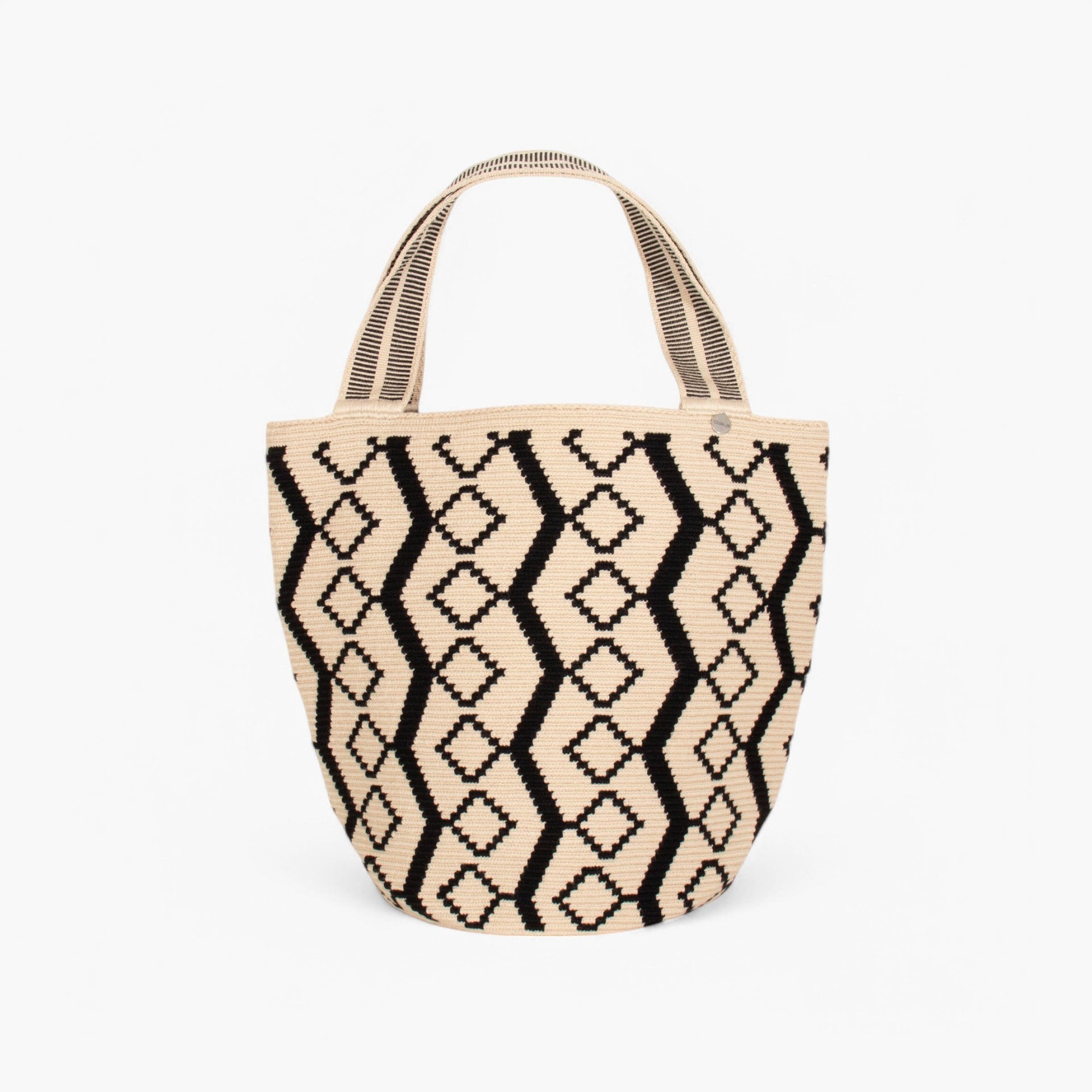 The roomy shape of the geometric round tote is perfect for days where you need all the essentials—and more. Crafted by Wayuu artisans using techniques passed down through generations.