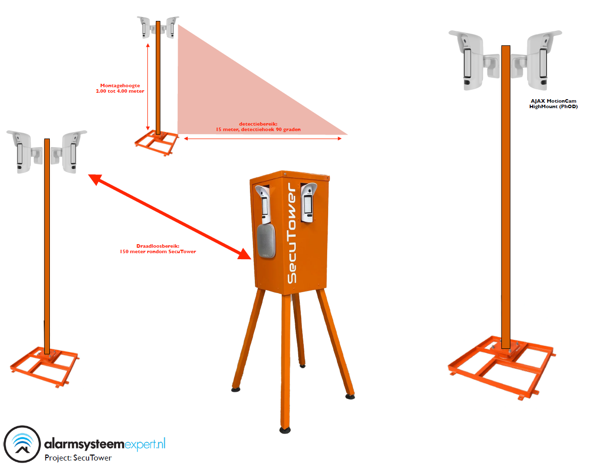 Op deze mast kunnen in elke richting 4 Ajax MotionCam high mount gemonteerd worden.