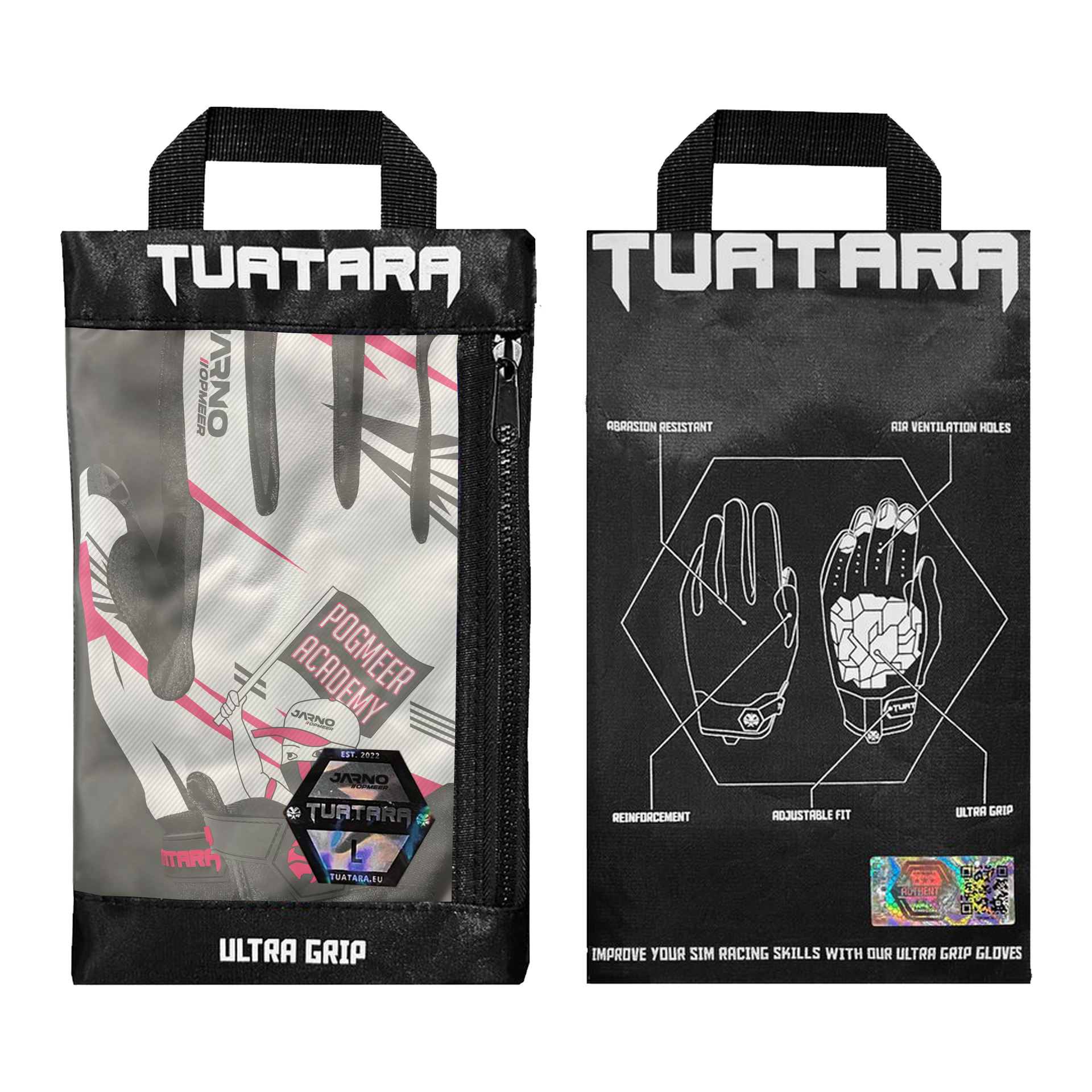 Step into style with our white Racing Gloves, inspired by the obstacles on the path to success and the drive to be the fastest. These gloves not only exudes comfort but also a subtle yet striking flair. The all-over pattern, reminiscent of these obstacles, gives a unique and dynamic look, symbolizing the challenges overcome on the journey to greatness. In collaboration with Tuatara.