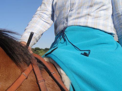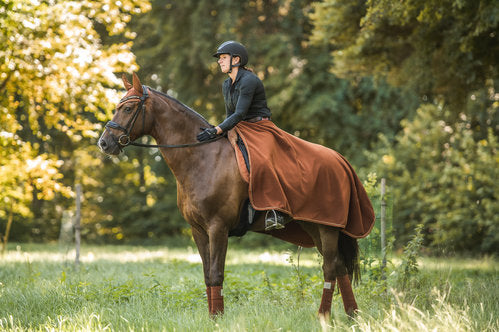 Briljant, deze uitrijdeken waarbij de achterhand van je paard warm blijft én jouw benen ook heerlijk warm blijven.