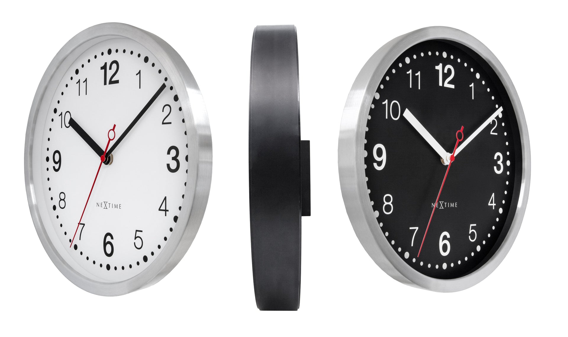 Wall clock 32.3x28x10cm-Silent-White & Black-Aluminium-NeXtime 'Double'