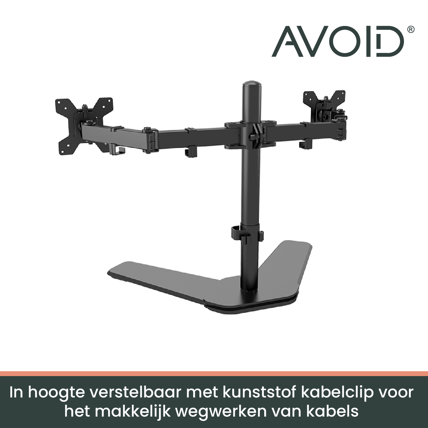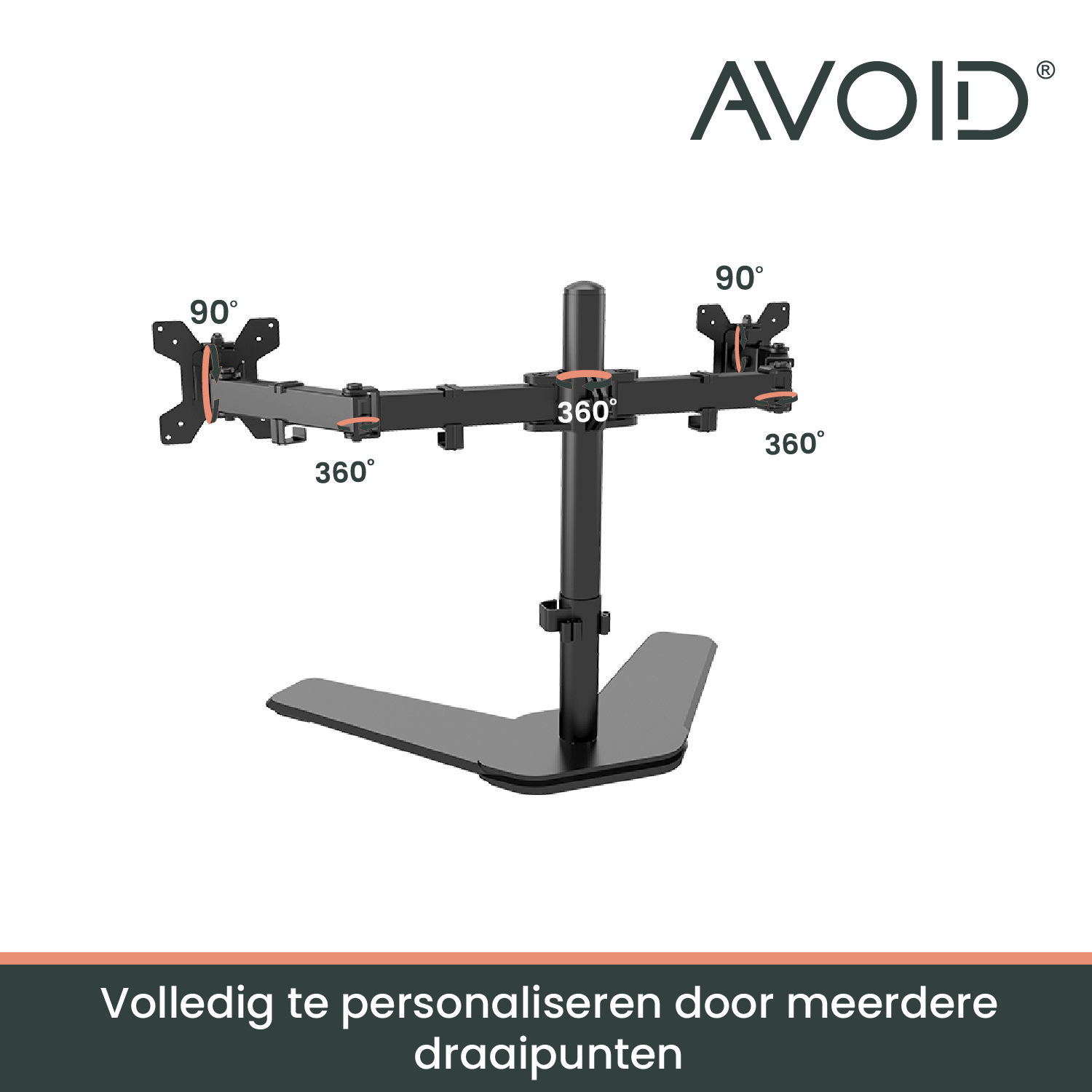 AVOID® - Dubbele Monitorbeugel met Standaard – Verstelbaar & 360° Draaibaar | VESA-100x100