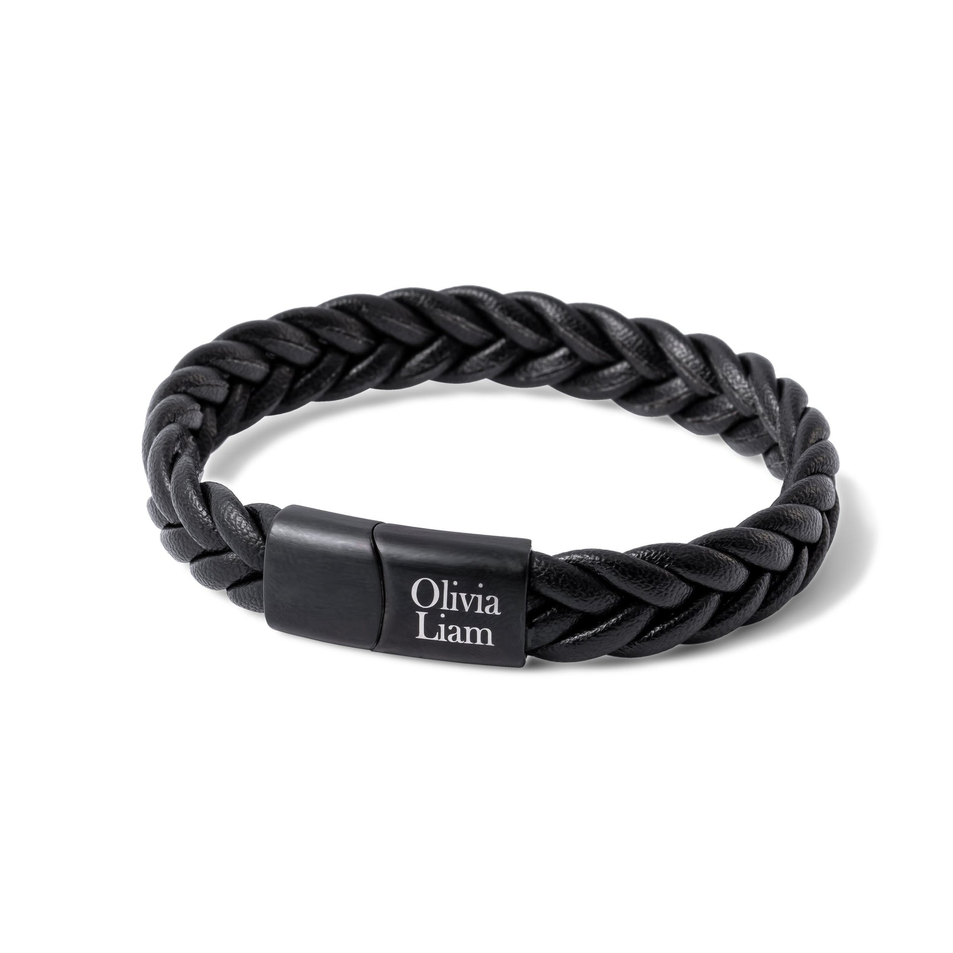 Gepersonaliseerde gevlochten leren armband – Axel-editie