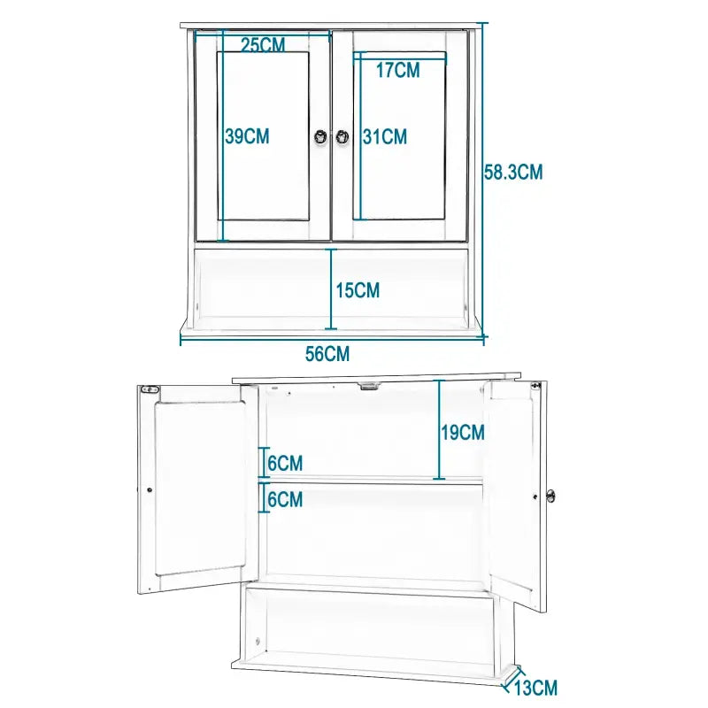 BukkitBow - Badkamerkast met Spiegel / Badkamermeubel - Verstelbare Plank - Duurzaam en Vochtbestendig - Eenvoudig te Onderhouden - 56x13x58,3 cm