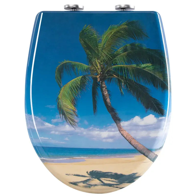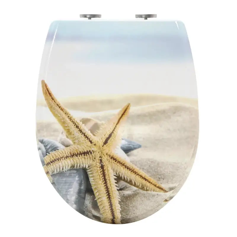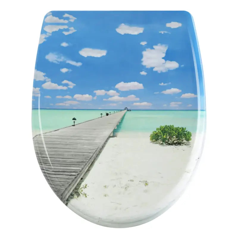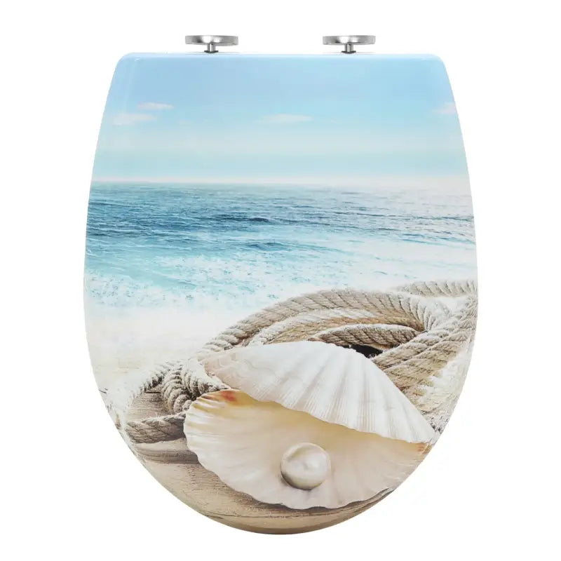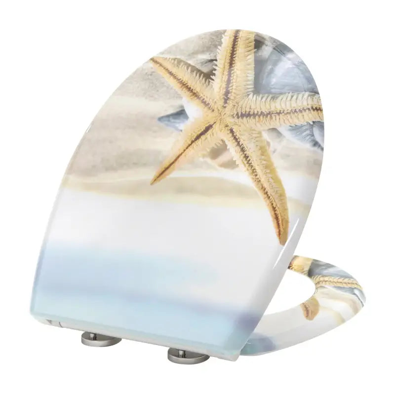 De toiletbril is gemaakt van Duroplast, wat zorgt voor een blij oppervlak dat antibacterieel en gemakkelijk schoon te maken is. De cruciale scharnieren veilige stevigheid en duurzaamheid. Bovendien geeft het stijlvolle ontwerp met print een mooie uitstraling aan je badkamer. Met de afmetingen die geschikt zijn voor standaard O-vormige toiletpotten en een draagvermogen tot 150 kg, is deze toiletbril een praktische en elegante toevoeging aan elke badkamer.