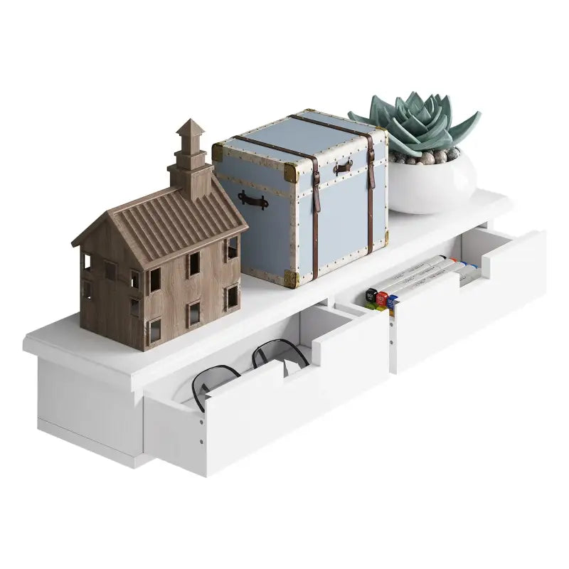 Elke lade van deze wandplank is voorzien van een verzonken handgreep voor gemakkelijk openen en sluiten, en valbeveiligingen zorgen ervoor dat de laden stevig op hun plaats blijven zitten. Gemaakt van hoogwaardige MDF, kan deze plank tot 10 kg aan gewicht dragen, terwijl de witte laklaag niet alleen een moderne uitstraling biedt, maar ook waterbestendigheid en eenvoudig onderhoud fundamenteel.