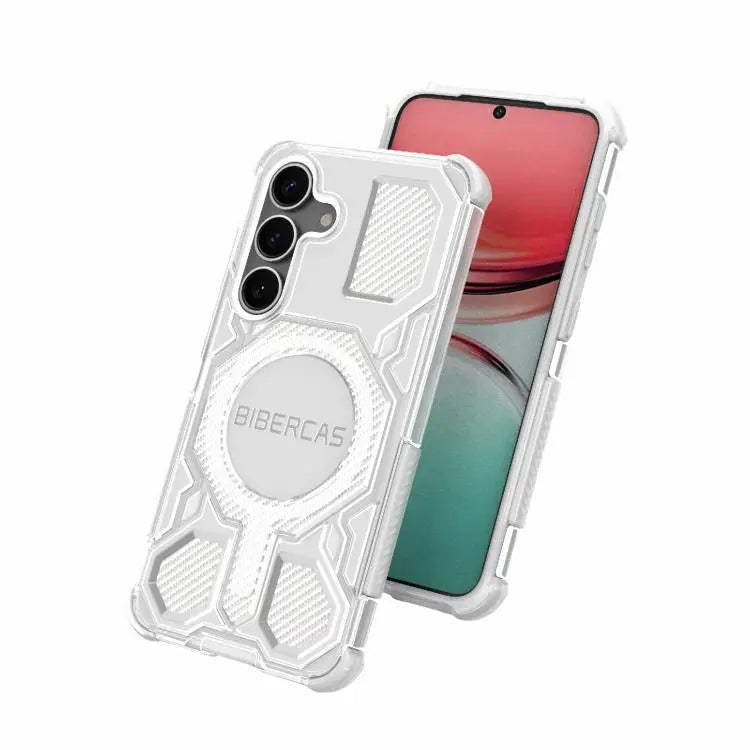 Voor Samsung Galaxy S25 5G BIBERCAS Transparante Kleurenserie MagSafe Airbag Schokbestendige Telefoonhoes (Wit)