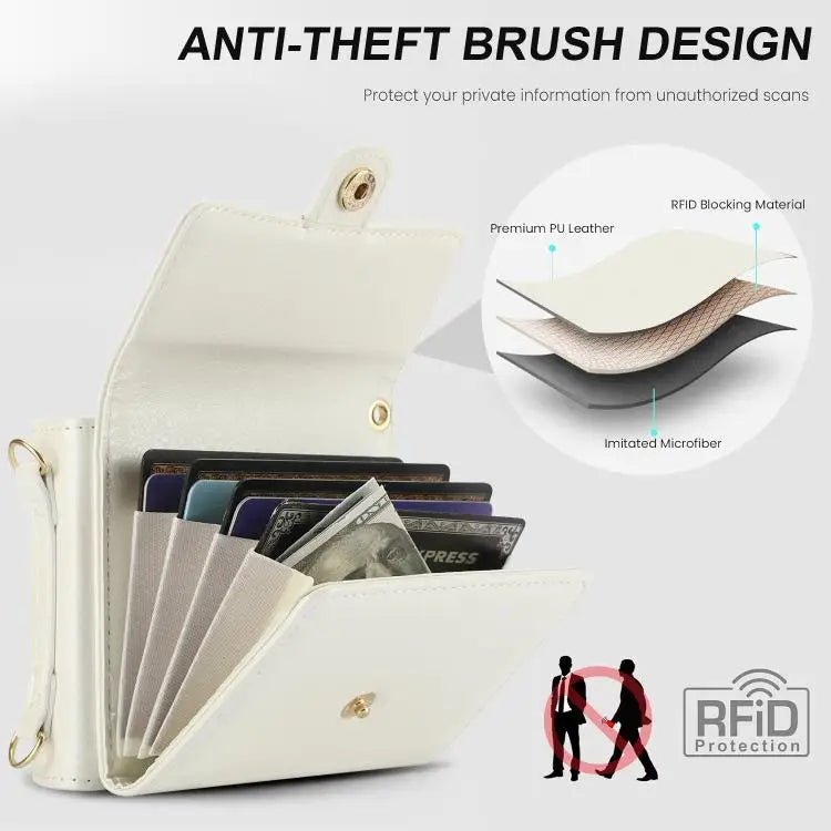 Voor Samsung Galaxy Z Flip7 5G effen kleur rugzak portemonnee kaartsleuf RFID PU telefoonhoesje (wit)