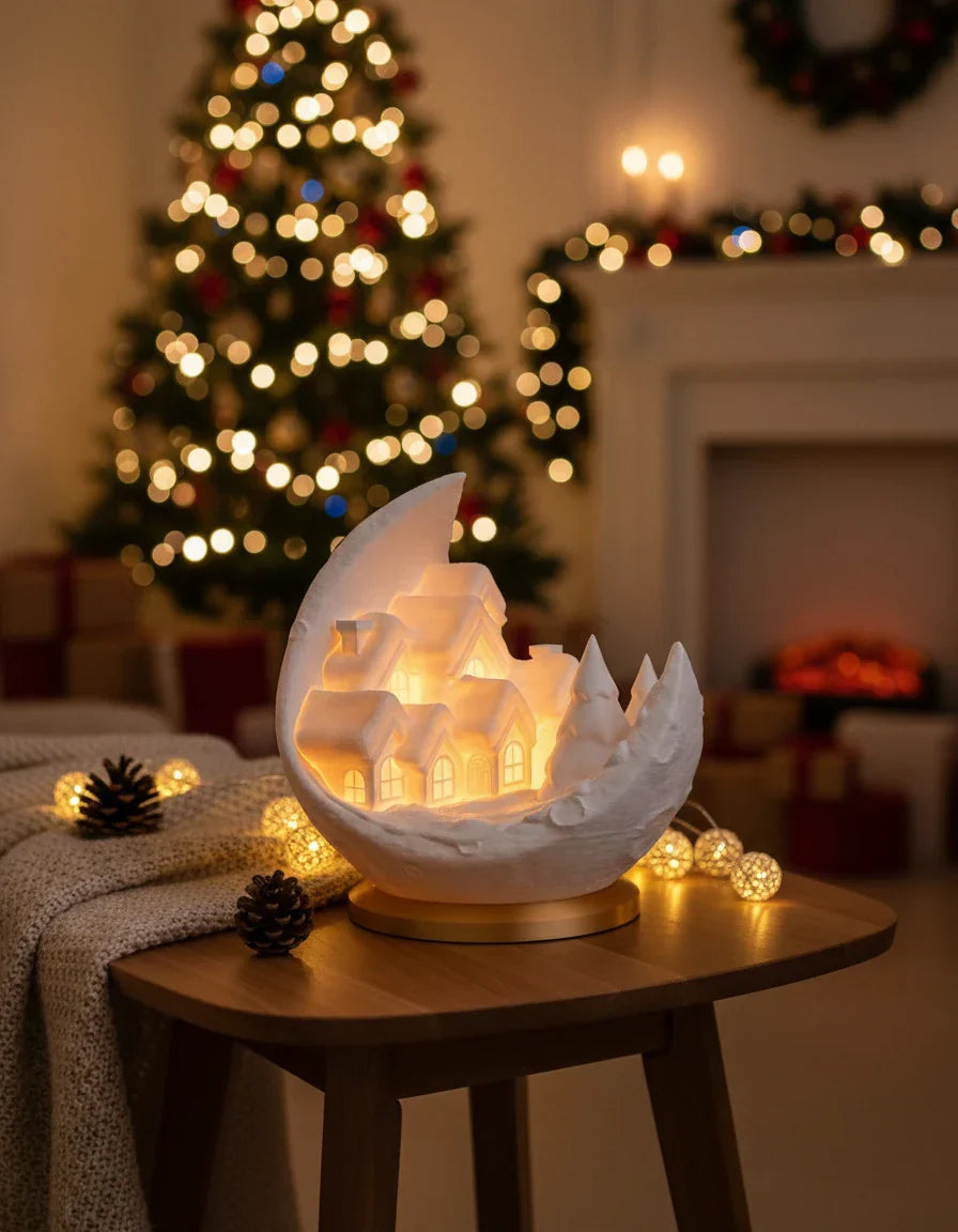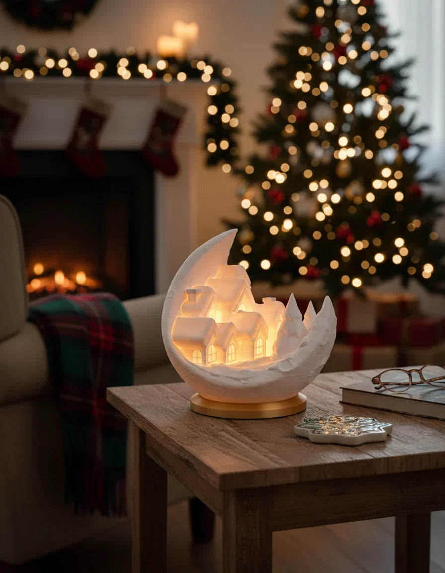 Deze lamp werkt een magische en rustgevende sfeer toe aan je interieur, niet alleen tijdens kerst maar ook het hele jaar door. Dankzij het indirecte maanlandschap en het charmante dorpje is het een stijlvolle eyecatcher op een zijtafel, vensterbank of als nachtlampje in de slaapkamer.