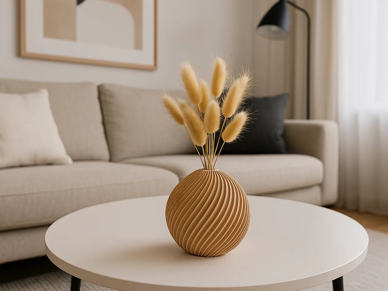 De Vortica vaas brengt roest en verfijning in elk interieur. Haar ronde vorm en dubbele, spiraalvormig patroon geeft een speelse draai aan minimalistisch ontwerp.