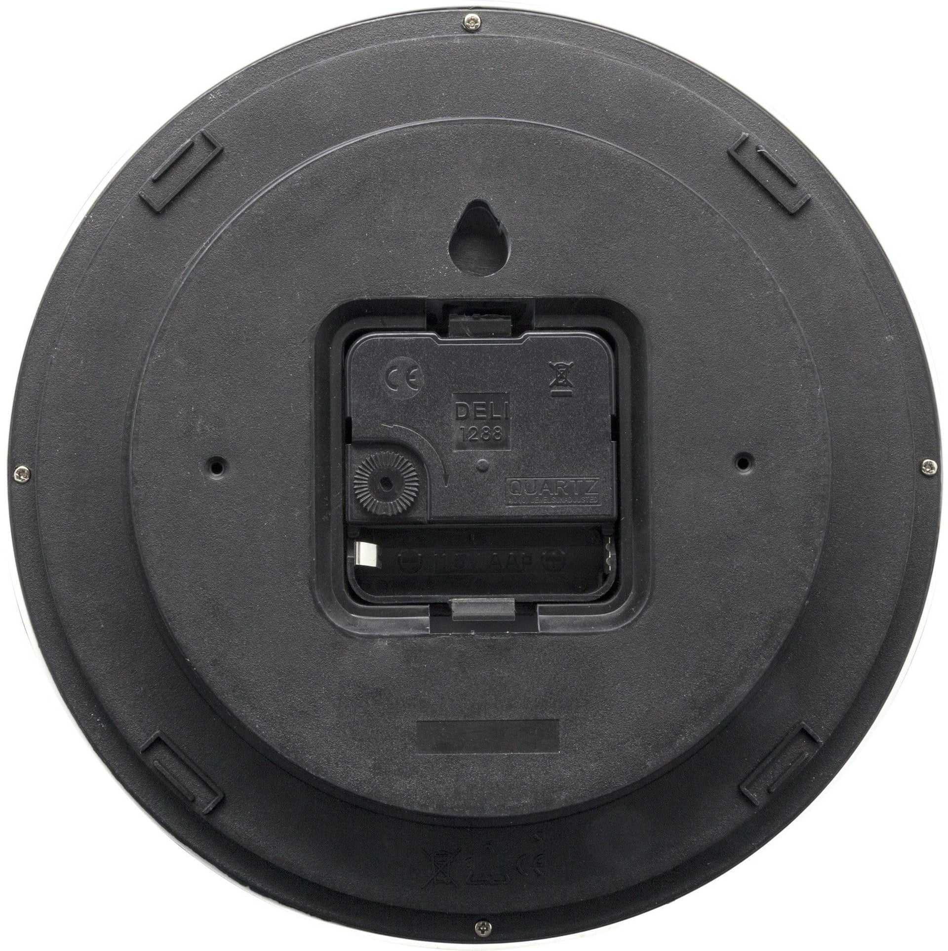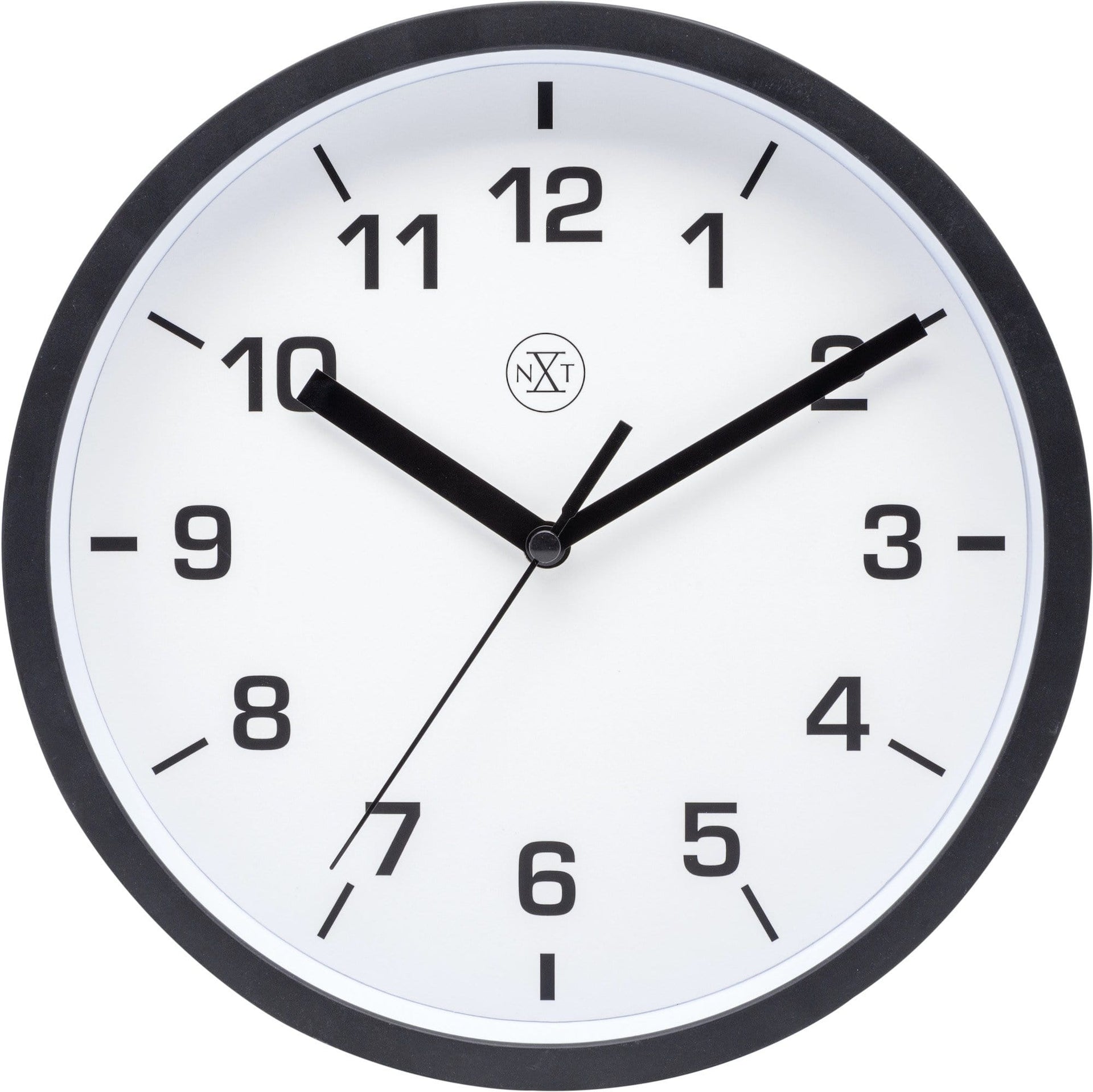 De nXt "Easy Small" is een witte kunststof wandklok (Ø20 cm). De wijzerplaat heeft duidelijke cijfers en opvallende wijzers. Hij werkt op 1 AA-batterij (niet meegeleverd).