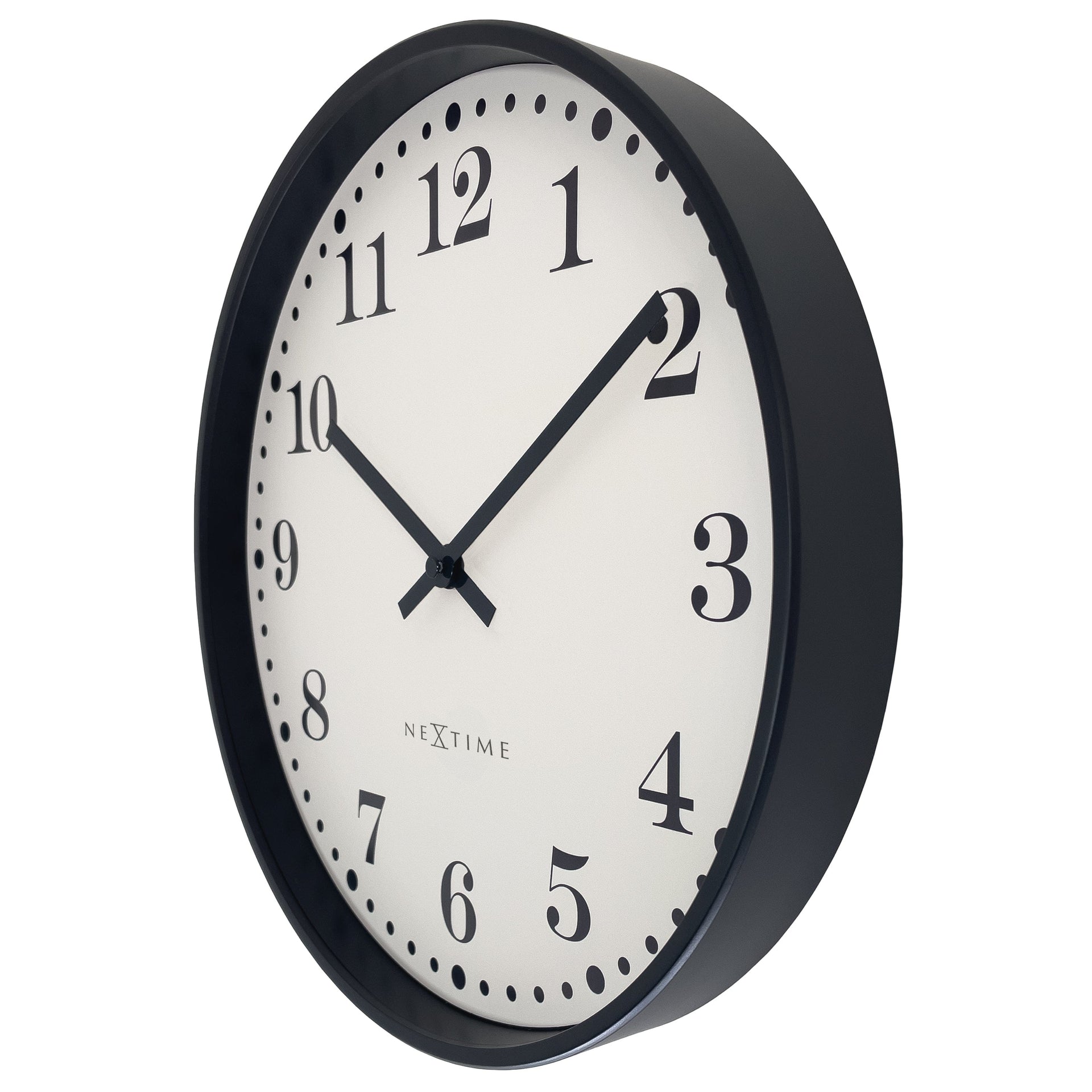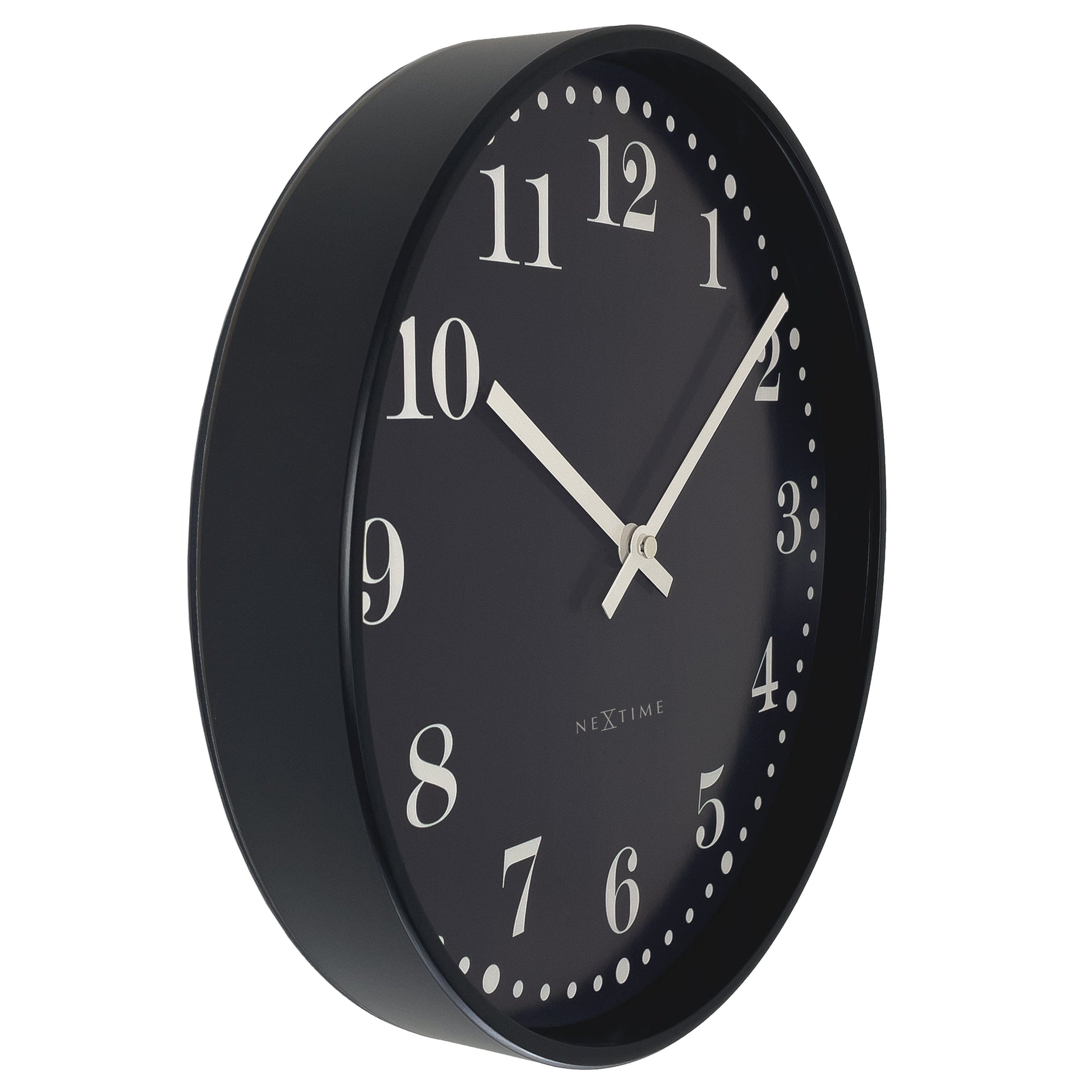 Met een matzwarte afwerking gecombineerd met gebroken witte accenten straalt Dickens (30 cm) een moderne retrostijl uit met een knipoog naar vintage esthetiek. Deze klok werkt op 1 AA-batterij (niet inbegrepen).