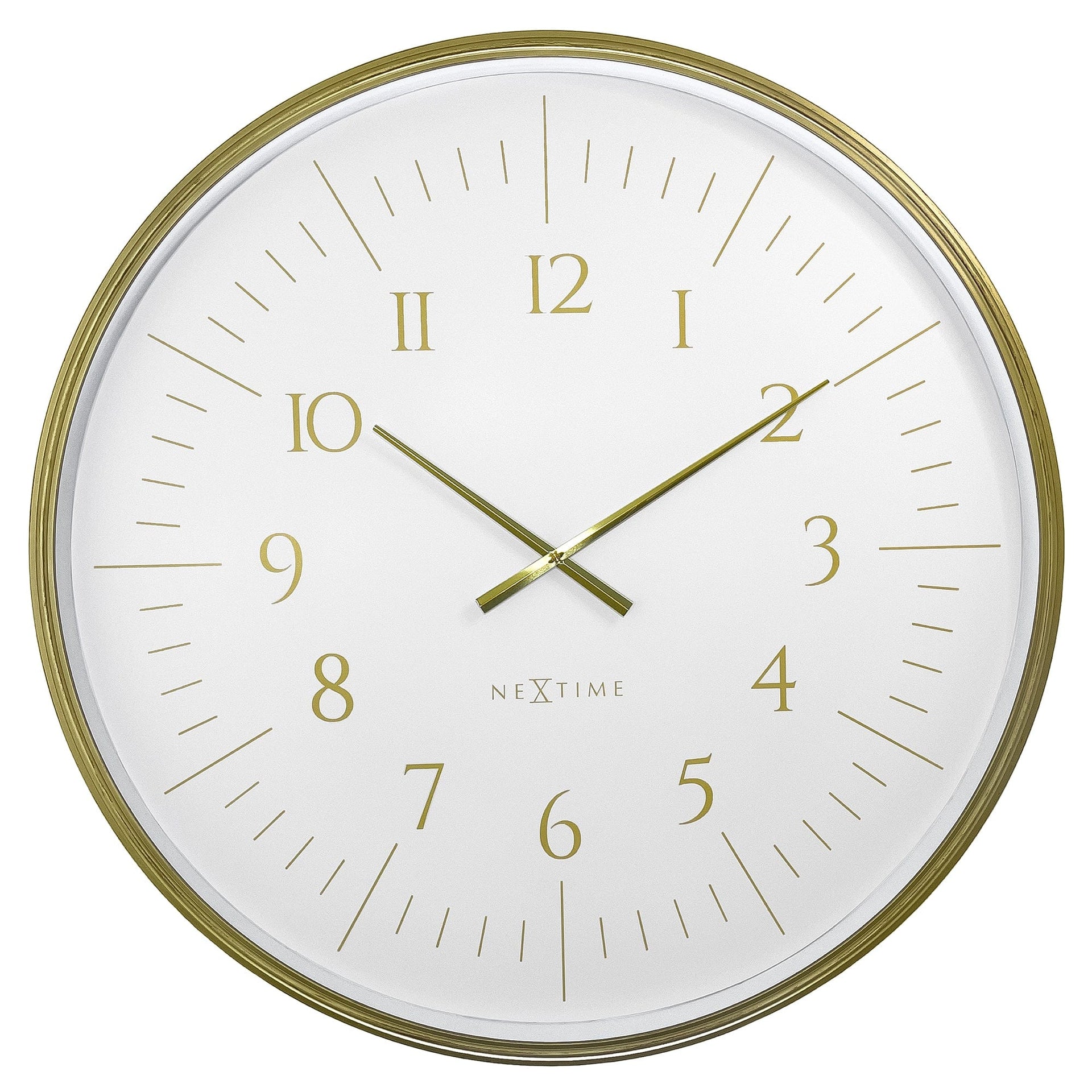 Met een geborstelde gouden kast en een strakke zwart/witte wijzerplaat straalt de Galaxy Large (77 cm) van NeXtime tijdloze elegantie uit. Het strakke ontwerp combineert moeiteloos moderne luxe met klassieke verfijning. Deze klok werkt op 1 AA-batterij (niet inbegrepen).