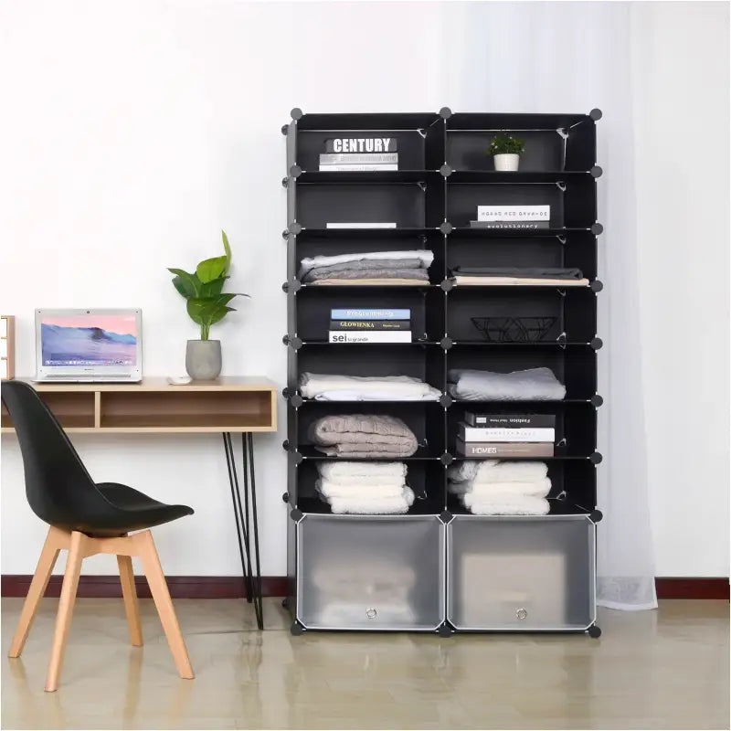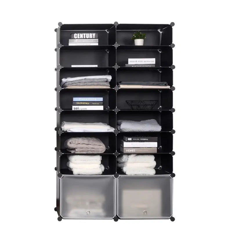 Deze opbergkast beschikt over een ruime opslagruimte met 14 kleine compartimenten en 2 grote compartimenten. Of het nu gaat om kleding, schoenen, boeken, speelgoed of sokken, deze kast biedt voldoende ruimte om alles georganiseerd te houden. Bovendien zijn de deuren semi-transparant, waardoor stof effectief wordt tegengehouden en uw items schoon blijven.