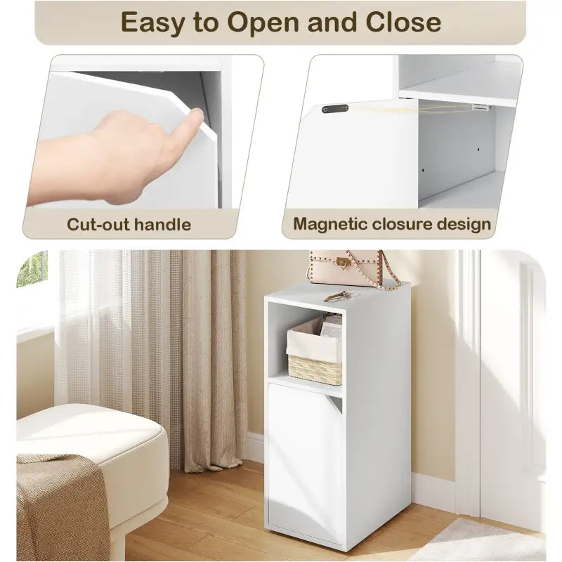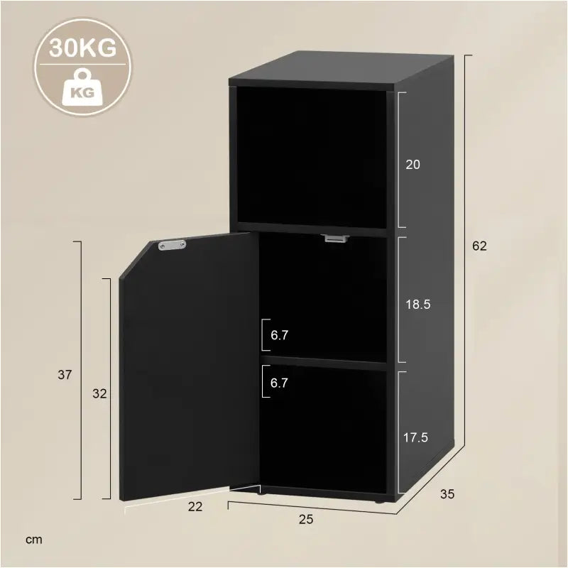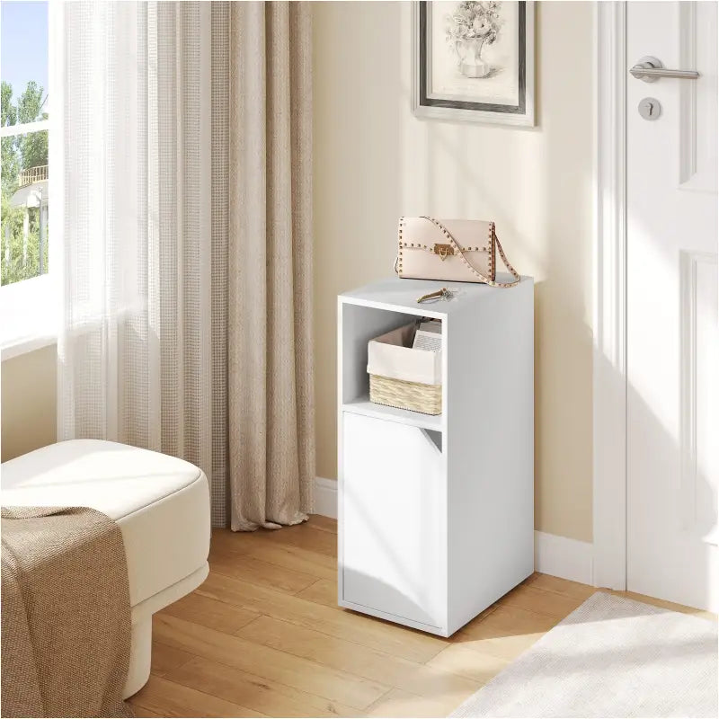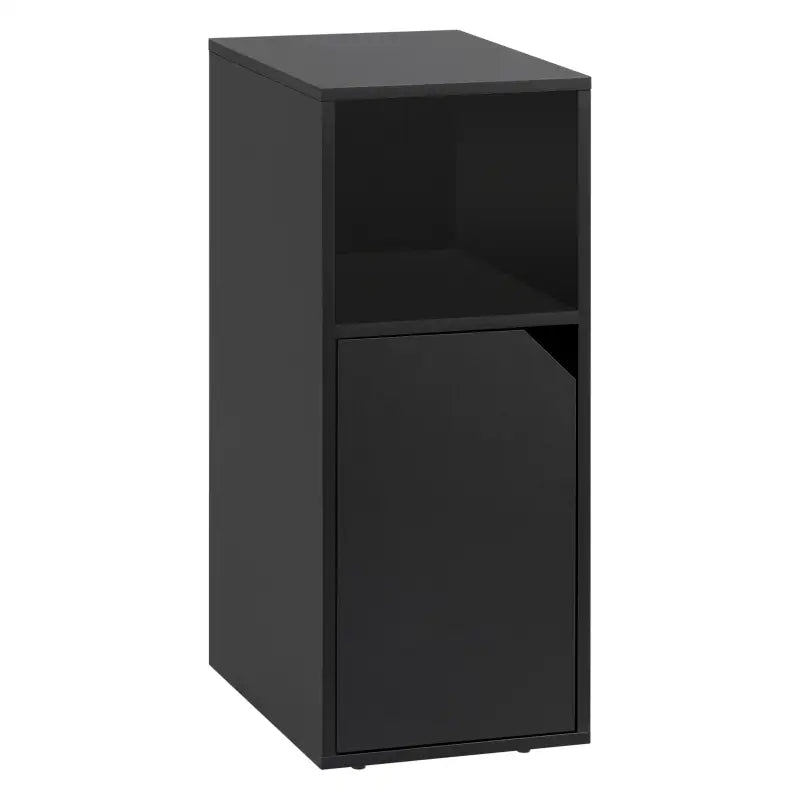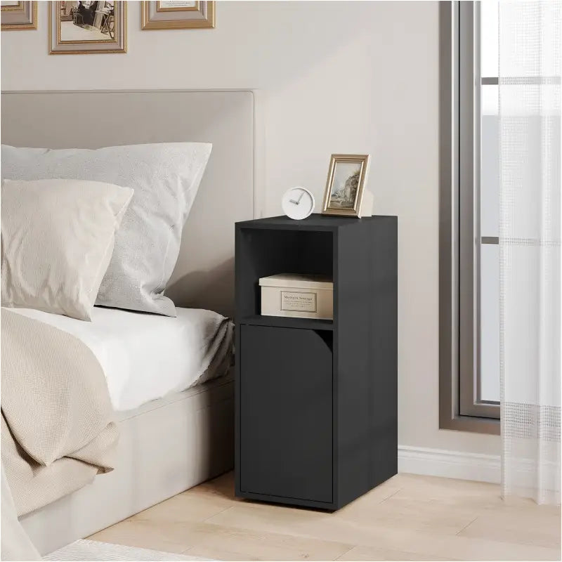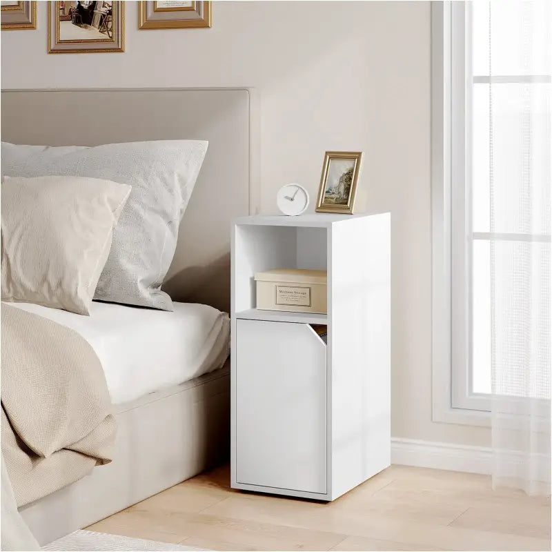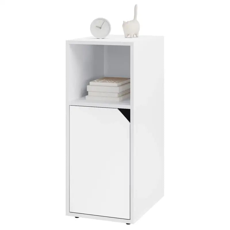 Het BukkitBow nachtkastje met opbergruimte vele modern design met praktische functionaliteit, waardoor het een ideale keuze is voor elke slaapkamer. Met een afmeting van 25 x 35 x 62 cm voorbij dit compacte meubelstuk perfect in kleinere ruimtes zonder boeten aan opbergruimte. Het nachtkastje is krachtig uit hoogwaardig houtmateriaal van E1-kwaliteit en heeft een draagvermogen tot 30 kg, waardoor het niet alleen stijlvol maar ook stevig en duurzaam is. Dankzij de melamine fineerlaag is het oppervlak glad, kras- en waterbestendig, en eenvoudig schoon te maken. Verkrijgbaar in zowel klassiek wit als modern zwart, verleden het naadloos bij elke interieurstijl, of het nu modern, industrieel of Scandinavisch is.
