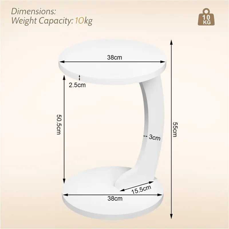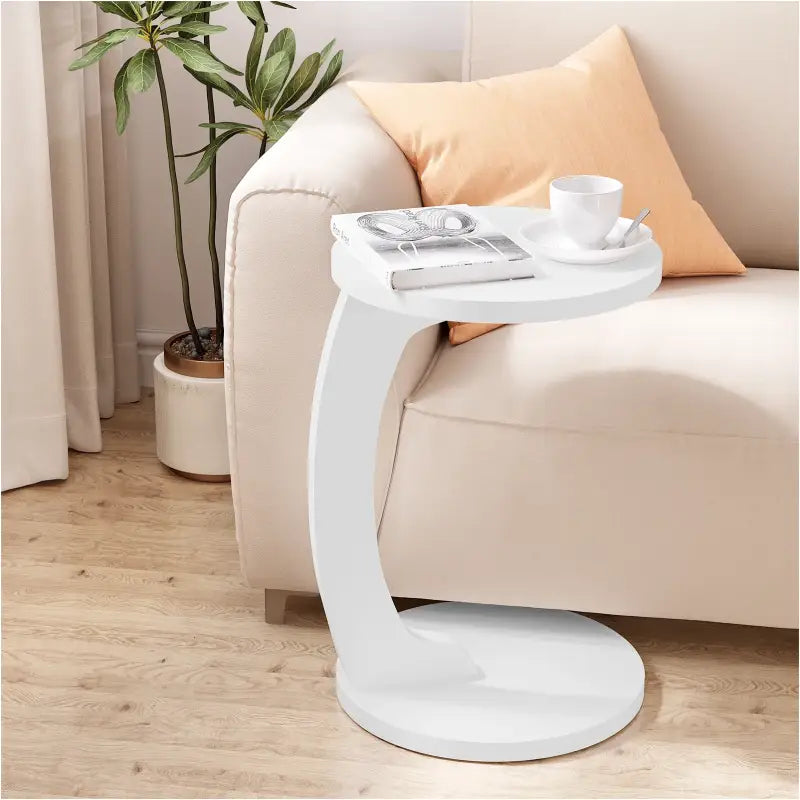 De BukkitBow Ronde Bijzettafel is de ideale oplossing voor kleine ruimtes en biedt zowel stijl als functionaliteit. Met een afmeting van 38x55 cm en een slank C-vormig ontwerp, kan deze tafel gemakkelijk over de bank of het bed worden geschoven, waardoor je een handige opbergruimte hebt voor je afstandsbediening, drankje of snacks. Dit zorgt ervoor dat alles binnen handbereik is, zelfs wanneer je comfortabel zit of ligt, zonder dat je hoeft te staan. Het innovatieve ontwerp maakt deze tafel perfect voor elke ruimte waar ruimte een premium is.