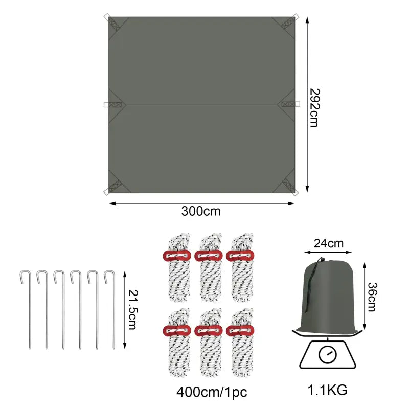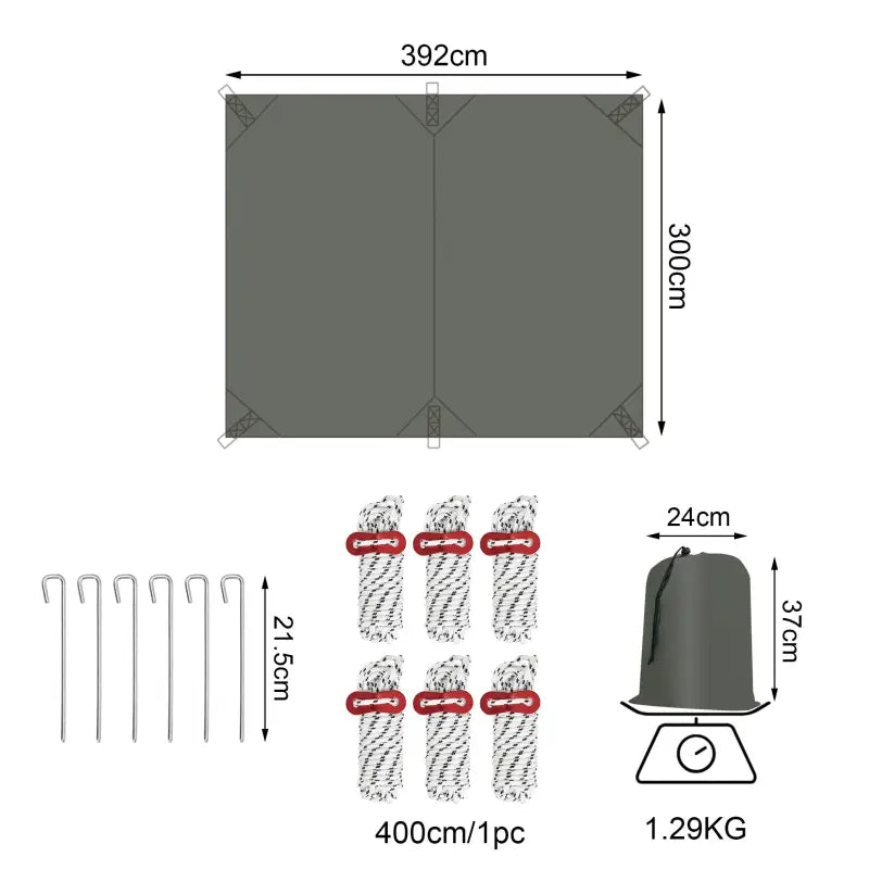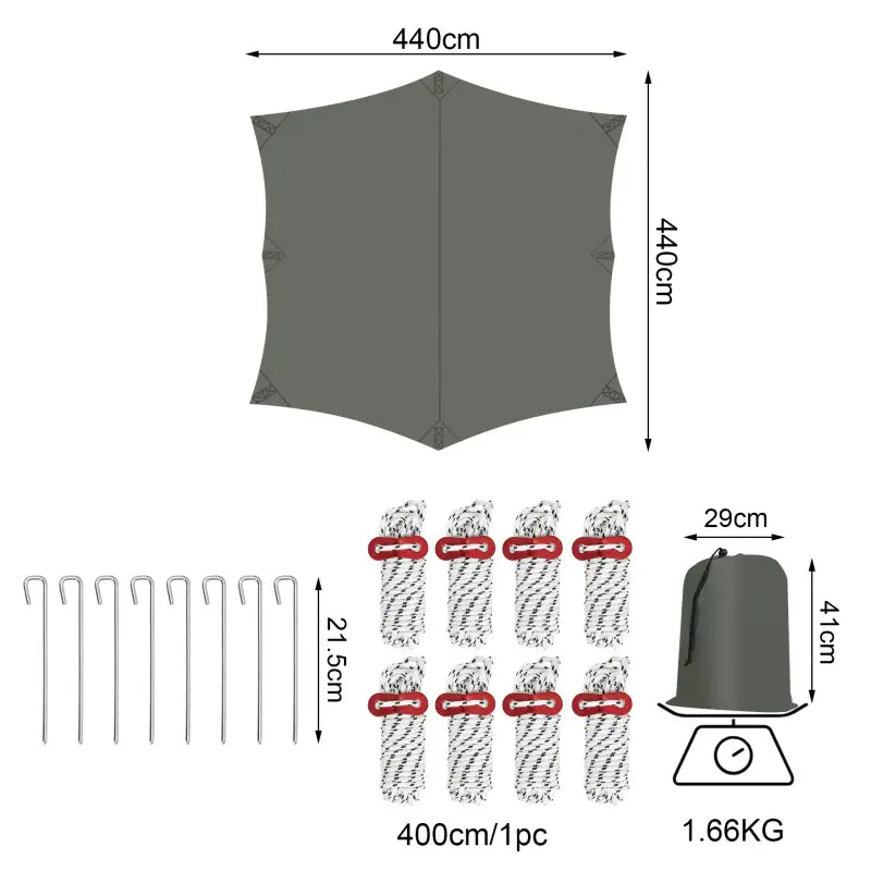 BukkitBow - Tentzeil - Waterdicht - Zonwering SPF50+ - Met Oogjes, Touwen en Haringen - Grijs