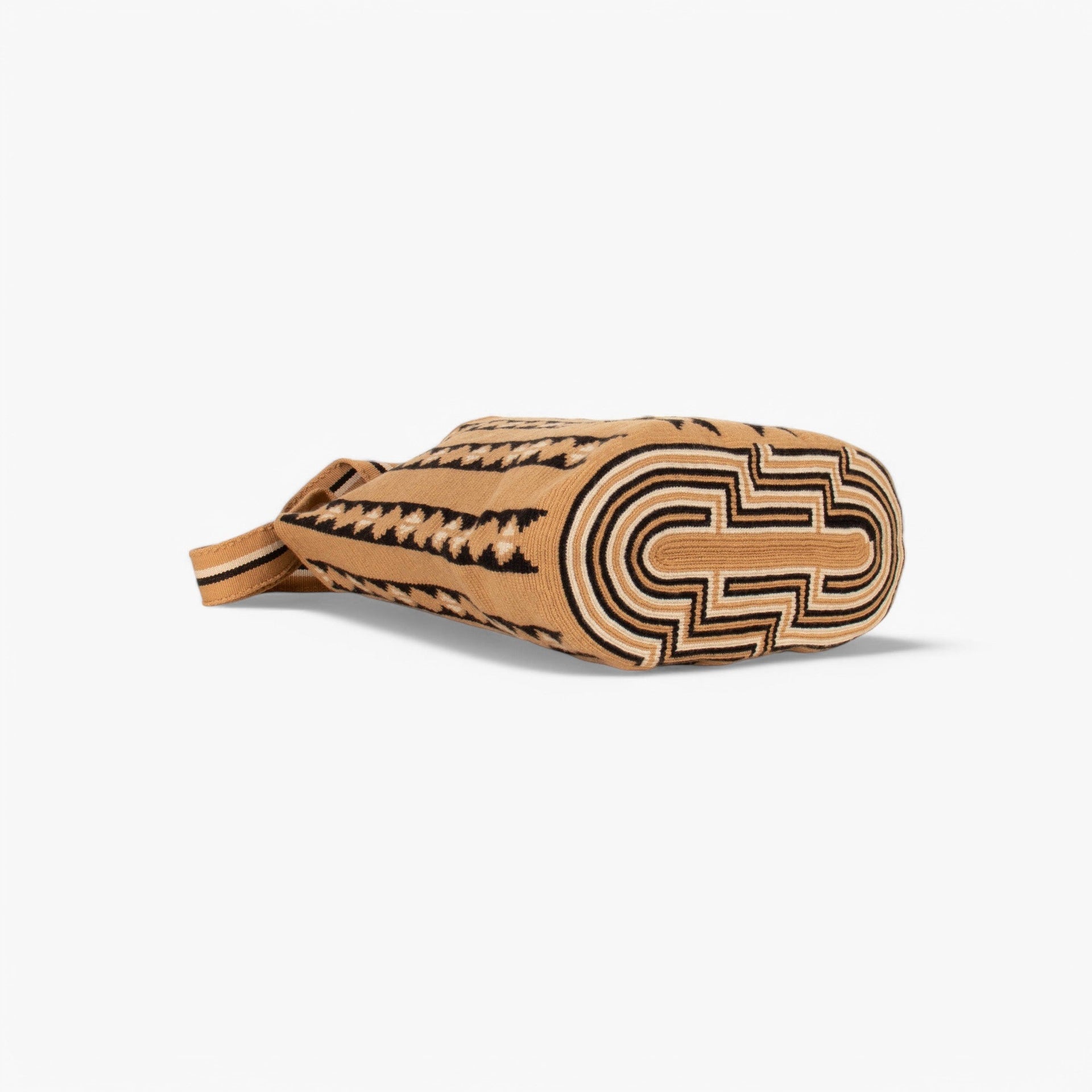 Wayuu zanaatkarları tarafından nesilden nesile aktarılan tek iplik tekniği kullanılarak elle dokunmuş, kendine özgü oval bir şekle sahiptir.