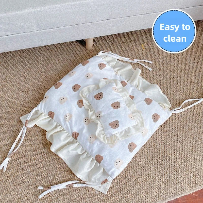 – Prachtig houten minibedje met matrasje en dekje.